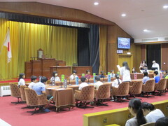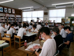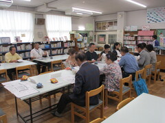 また、図書室で第1回地域教育連絡協議会が行われました。町会長様等の委員の方にお集まりいただき、学校教育へのご支援や地域の要望等への意見交換を行いました。今後ともご支援をお願いいたします。