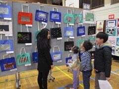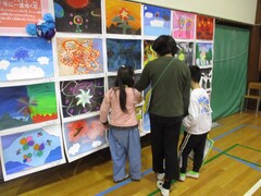 職員室前、校長室前に6年の図工の作品が飾られています。