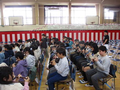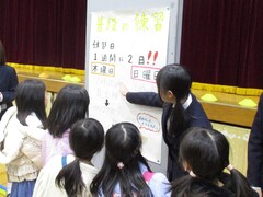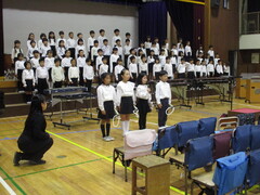 24日の卒業式に向けて、リハーサルを行いました。5年生によるリコーダーの演奏で卒業生の入場が始まります。