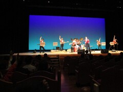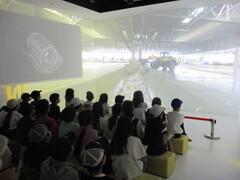 撮影した動画を遅れて再生するタイムシフトカメラをステージ上に映しています。その場で自分たちの動きを確認することができます。