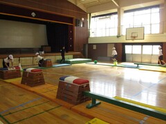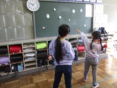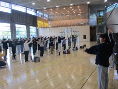 1年2年の姿育体操の様子です。姿勢がよいと集中力もアップします。