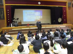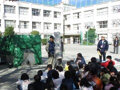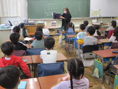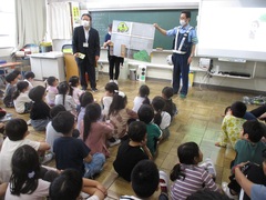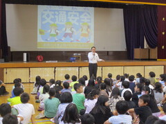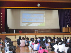 小雨模様のため、教室での安全教室に変更となりました。大田区教育委員会から交通安全指導員の先生お二人と蒲田警察署からおまわりさんを講師としてお招きしました。1年生のこどもたちは、真剣な表情で交通安全にかかわる話を聞いていました。雨の日が多くなりますが、止まって右、左、右の確認をしてこれからも安全に生活してほしいです。