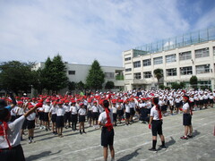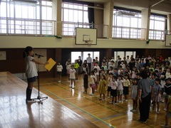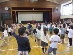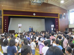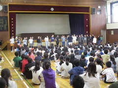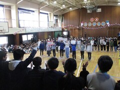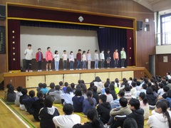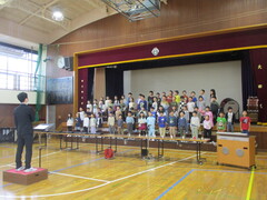 みんなで気持ちをあわせて歓迎の言葉を言ったり、大きな声で歓迎の歌と校歌を歌ったりしていました。