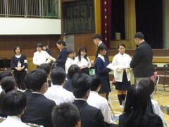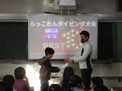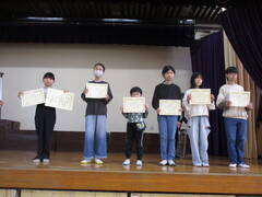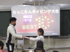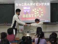 全国タイピング大会の表彰(2年生5名と3年生1名)を行いました。