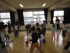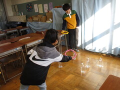 また、けん玉やコマ、カルタなどをしてみんなで遊びました。年長のこどもたちも楽しそうにしていました。