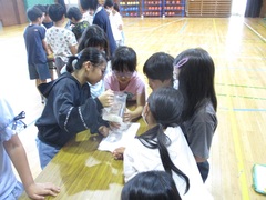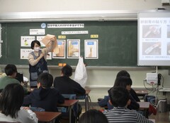 こどもたちは、うなずいたり、驚いた様子を見せたりしながら真剣に話を聞き、体験活動に取り組んでいました。