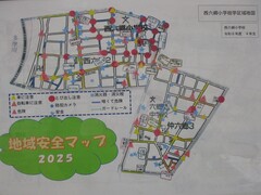 学年で協力して、実際に地域に行って調べてきた箇所をマップ上に落とし込んでいき、地域安全マップが完成しました。