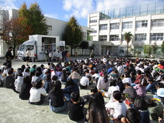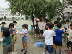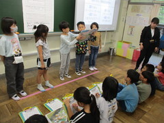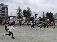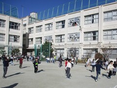 四組の4年・5年・6年生のみんなで出雲小学校まで歩いて行き、西六郷小学校・出雲小学校・東糀谷小学校3校で交流会を行いました。