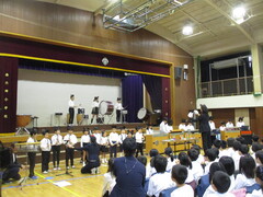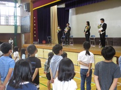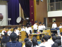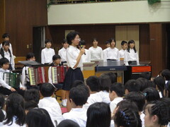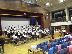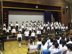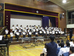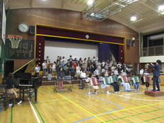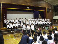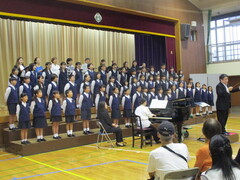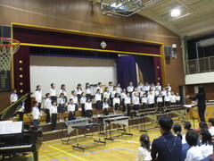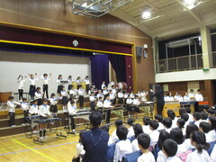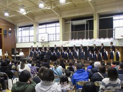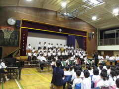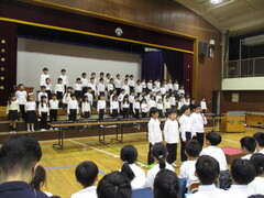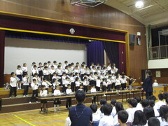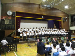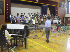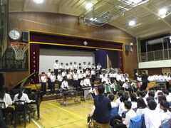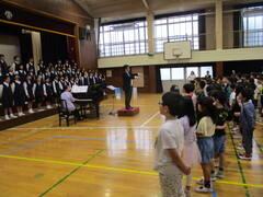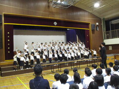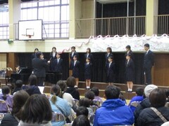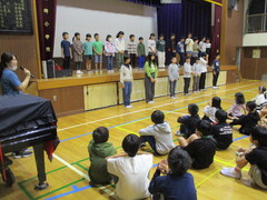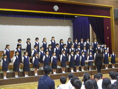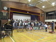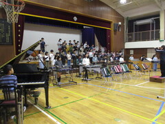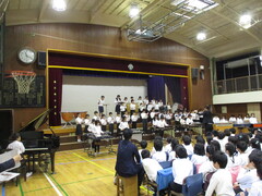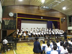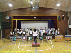 今日の音楽朝会は先日、合唱部が定期演奏会で歌った曲を西六郷小のこどもたち全員に披露しました。