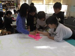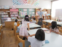 先日に続いて、近隣の保育園年長さんと1年生との交流会をしました。