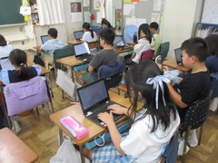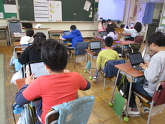1年生のこどもたちは、6月くらいからタブレットを使っての学習を始めます。