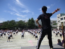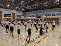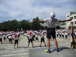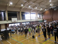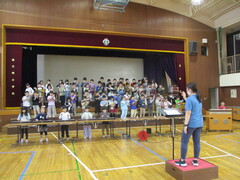 6月15日の運動会に向けて、全児童が校庭に集まり、体育朝会を行いました。