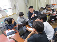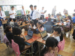 1年生の下校後、担任はこどもたちのタブレット端末を開き、一台一台の設定をしています。