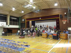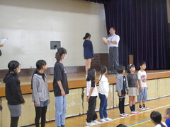 体育館で修了式を行いました。各学年の代表児童に修了証を渡しました。