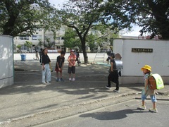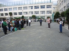 学校公開の終わりに、引き取り訓練を行いました。暴風雨や地震等の自然災害時にこどもたちの命を守る大切な訓練です。暴風警報発令に伴い緊急メールでのお知らせで参集していただくことを想定して行いました。
