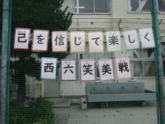 今年の運動会のスローガンは「己を信じて楽しく 西六笑美戦(にしろく えびせん)」です。