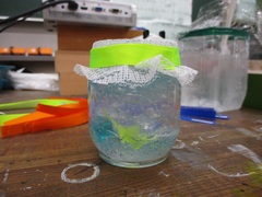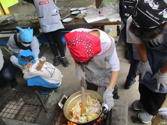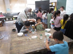 西六郷小学校PTAの皆様の「スライムづくり」のコーナーは、順番待ちのこどもたちがテントをぐるっと囲むほどの大盛況でした。