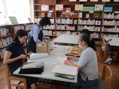 たくさんのボランティアの保護者・地域の皆様にお越しいただきました。本を選びやすくなるように掲示物や展示の仕方の工夫をしていただきました。ありがとうございます。