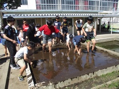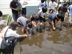 裸足で田んぼに入り、土を掘り返し、柔らかくしました。いい土になりましたね。