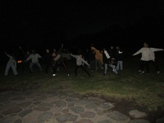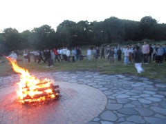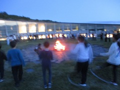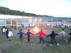 夕食時から雨が降り出しました。夕食後は、7校揃って体育室でキャンドルファイヤーを行いました。