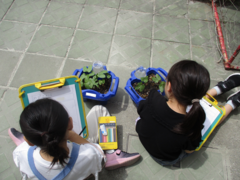 一人一人が自分のあさがおを見ながら気付いたことを絵と文で書いています。