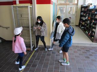 校内探検ゲームでは、校内に隠れた5年生が、SDGsクイズを出しました。