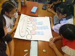 総合的な学習の時間「続・地域のお祭りを広め隊」では、地域の伝統ある行事として行われている「水止舞」について学習を進めています。校内研究では「今後、水止舞をより多くの人に知ってもらうために自分たちにできることは何か」についてグループでたくさんの案を出し合うことができました。