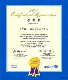 26年度の代表委員会の活動に対し、日本ユニセフ協会から感謝状を頂きました。