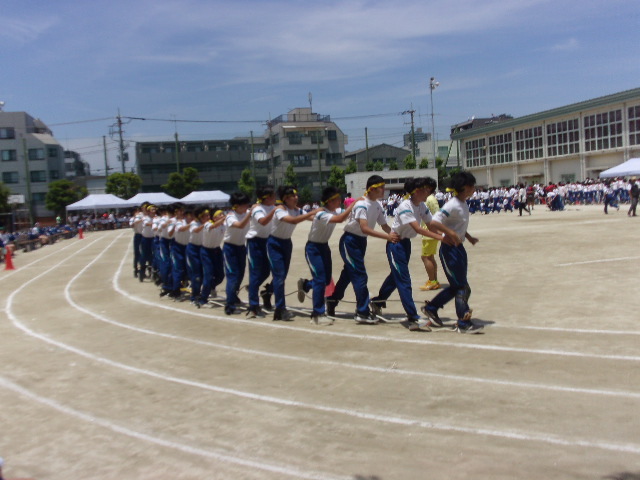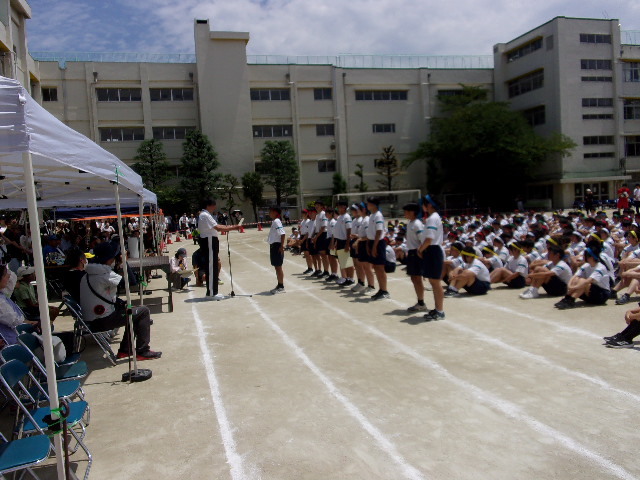 月曜日に朝礼、木曜日には避難訓練がありました。6月7日の運動会に向けて、各学年練習に力が入っています。写真は1学年の全体練習の様子です。
