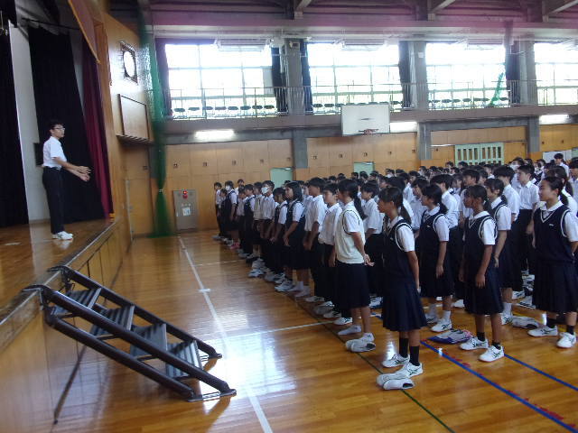 全校朝礼のようす