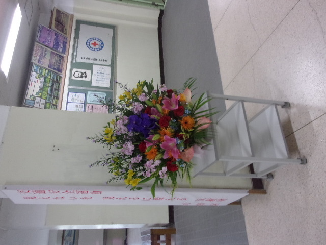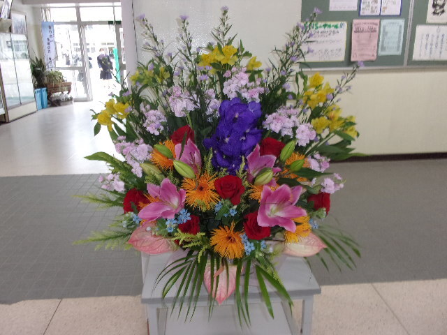 ご来校された方は、玄関を入ってすぐのところにすてきなフラワーアレンジメントが置かれていることに気づかれたと思います。これは、本校のある保護者の方が贈ってくださったものです。