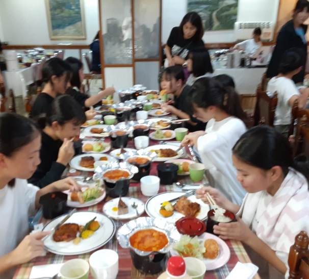 多くの生徒は、お店の中で美味しい中華料理を食べていることでしょう。