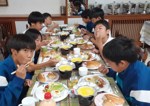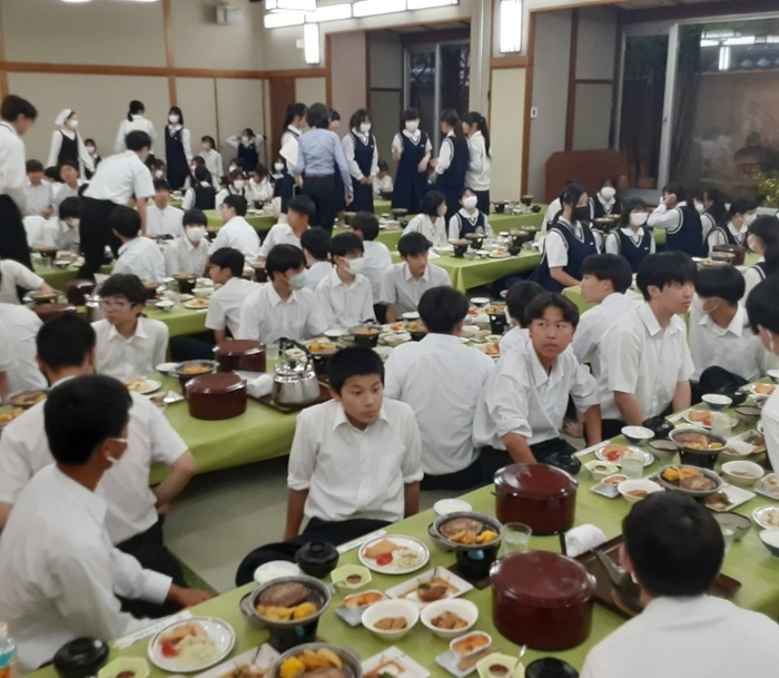 体験終了し、生徒たちが宿舎に帰ってきました。
