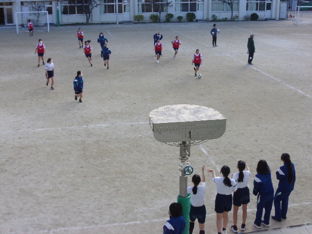 6校時、校庭から黄色い声が。