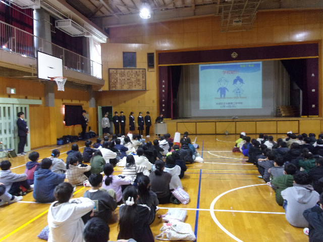 小中一貫教育の取組の一つとして「本校生徒が小学校を訪問し児童に読み聞かせをする」という活動を毎年行っています。今年度は入新井第一小学校におじゃまし、2年生の児童に日ごろの練習の成果を披露しました。