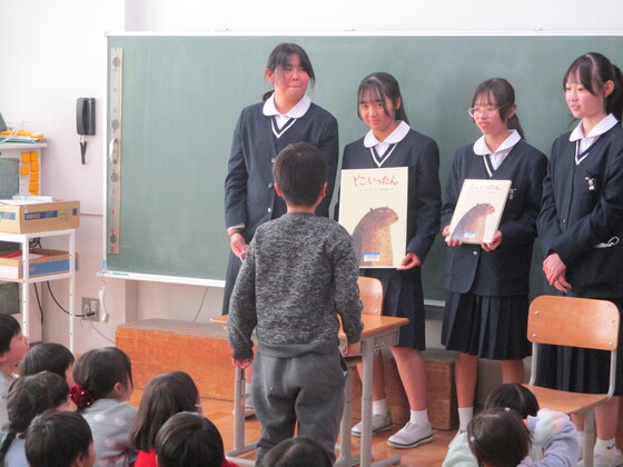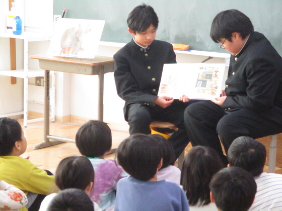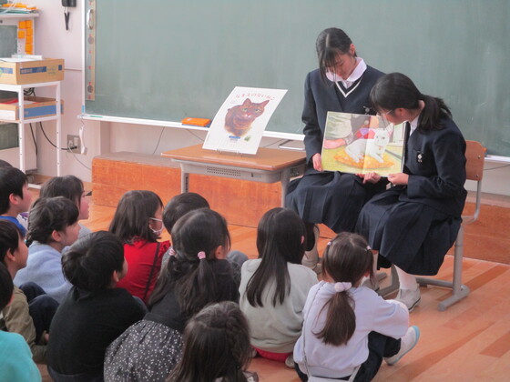 小学生の聞く態度、お行儀のよさが印象に残りましたが、それだけ本校生徒の読み聞かせが上手だったということでしょう。写真からもその様子が伝わってくると思います。