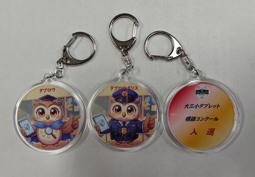コンクールに自主的に応募した88名が考えた106個の標語の中から大賞と特選を選びました。選ばれなかった他の全員にも入選とし、タブロウキーホルダーを贈りました。