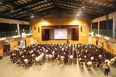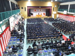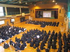 6時間目、体育館において生徒会選挙立会演説会が開催されました。立候補者・応援演説者ともに舞台で堂々と演説する姿は大変立派でした。