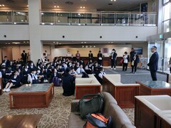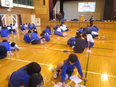 歓迎式では、新入生に六中のことを知ってもらい、早く学校生活に慣れても らうため、生徒会が中心となっていろいろな準備をしました。 部活動の紹介では、2分という短い時間の中で活動の様子や特色が伝わるよう、部活ごとにいろいろな工夫が見られました。新入生達も目を輝かせな がら、楽しそうに発表を見ていました。
