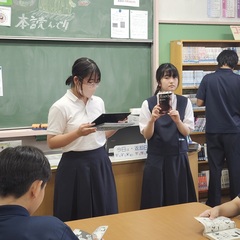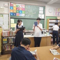 昼休みに、図書委員によるブックトークを実施しました。7月に図書館から紹介している3年図書委員の「おすすめ本」を実際に見せながら、あらすじやおすすめのポイントを紹介してくれました。