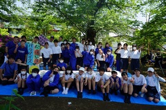 1200学級、2200学級、3200学級のボランティア生徒が午前7時40分に校門前に集まり、午前8時まで洗足池公園を清掃しました。