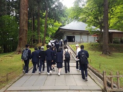 12時50分に中尊寺に到着。記念写真を撮影後、金色堂や国宝館などを見学しました。