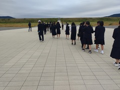 9:45陸前高田に着き、東日本大震災津波伝承館、松原、奇跡の一本松、陸前高田ユースホステル、気仙中学校を見学しました。