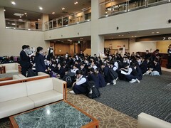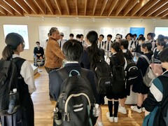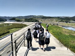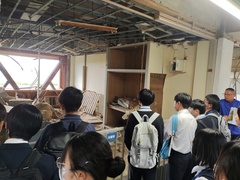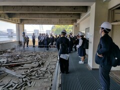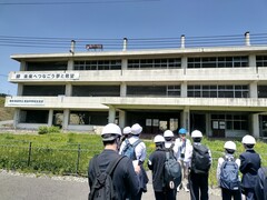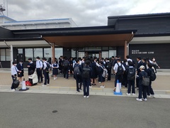 13時20分 気仙沼市東日本大震災遺構・伝承館を見学しました。震災の映像を鑑賞したあと、グループ別に語り部の方の案内で震災当時のまま保存されている旧気仙沼向洋高校校舎を見学し、最後に2011年3月22日に行われた階上中学校卒業式の卒業生代表の言葉の映像を鑑賞しました。見学後の想いを各自が付箋に書き残しました。