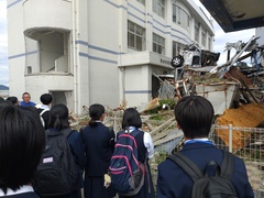 15:00から東日本大震災遺構大川小学校で被災児童の保護者の方から、同じ悲劇を繰り返さないために、川津波の威力と適切な避難行動についてお話しいただきました。