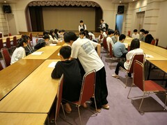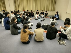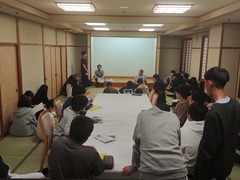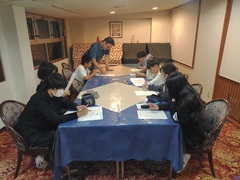 20時 クラス毎にグループに分かれて、修学旅行の体験のまとめを話し合いました。