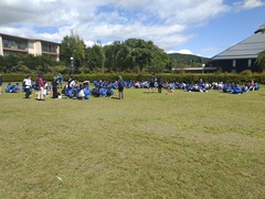 1年生が菅平高原で移動教室を実施しました。行程中は雨に降られず、特に2日目は晴天に恵まれました。1日目の軽井沢クイズウォーキングや2日目の菅平高原ハイキングで自然を堪能するとともに、レクレーションで交友を温めました。3日間を通して互いに思いやりをもって過ごす姿が多く見られ、成功裡に終えることができました。