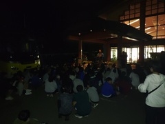 19時45分に宿舎から歩いて星空観察を行いました。山崎先生が説明している間は雲の中でしたが、宿舎に戻る途中で空が晴れ、綺麗な星空を観ることができました。