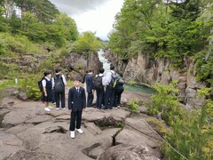 14時30分 厳美渓に到着。自然の景観の雄大さに歓声を上げました。