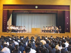 11月1日(土曜)文化祭を実施しました。1年生にとっては初めての行事なので、 練習段階ではどのクラスも手探り状態からスタート。学年練習では、他のクラスの歌声を聴き、もっと頑張ろう!とお互いに良い刺激を与えあっていました。満を持して迎えた当日、大勢の観客の前で緊張しつつも、一生懸命歌っている姿が素敵でした。先輩たちの歌を聴くことも勉強になったことでしょう。来年、再来年に向け、もっともっと成長していくことを楽しみにしています。